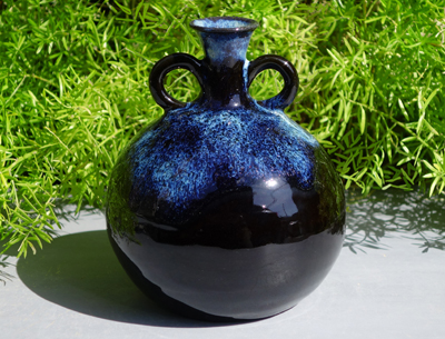 入会後初めて作ったのが難易度の高い形と色合いの朝鮮唐津の作品。全体に天目釉、首から胴体にかけてはまだら唐津釉の二重掛け。