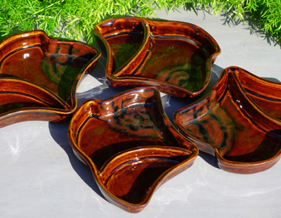 型起こしで作った仕切りのある千鳥形向付。釉薬は唐津黒。